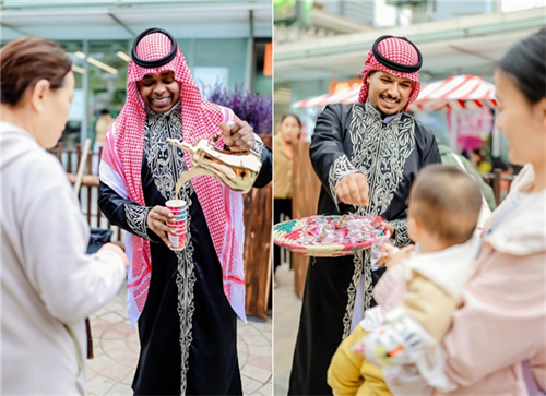 从试穿传统沙特长袍、品尝地道沙特咖啡与椰枣,到聆听乌德琴演奏、与舞者共跳阿尔达舞,“沙特小镇”通过全方位的文化互动,让游客深度感受沙特生活方式。